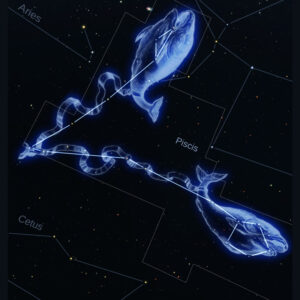 Según el mismo, estos dos peces ayudaron a la Diosa del Amor y a su querido hijo a escapar del gigante Tifón. En recompensa, Afrodita los convirtió en una constelación.