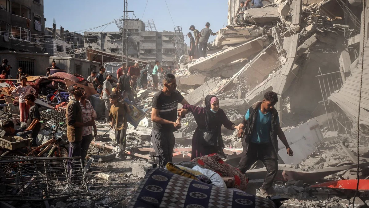 En las imágenes que acompañan esta noticia es posible ver los terribles bombardeos sobre la ciudad de Gaza. Israel ha cortado toda ayuda a la ciudad para forzar la salida de los gazatíes. Desde que comenzó este ataque, estamos viendo el éxodo en directo. Atascos eternos de familias enteras que huyen abatidas y desesperadas, buscando lugares seguros que no existen. Se mueven como pueden, en coches, camionetas destrozadas con lo poco que les queda: colchones, bidones para el agua y combustible, o mantas.